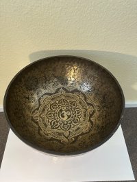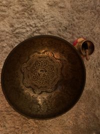 • Es handelt sich hierbei um eine Klangschale, welche aus sieben verschiedenen Metallen in Handarbeit hergestellt wurde.
